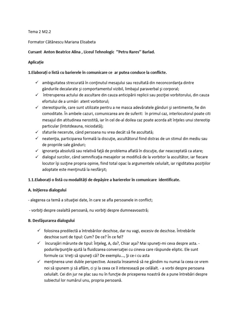 [Link]ți o listă cu barierele în comunicare ce ar putea conduce la conflicte.