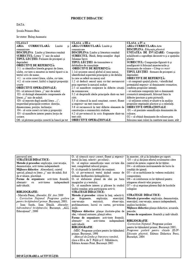 SUBIECTUL: Litera ”j” mic de mână SUBIECTUL: Heidi, fetiţa munţilor după echilibrată a suprafeţei decorative şi a spaţiului
