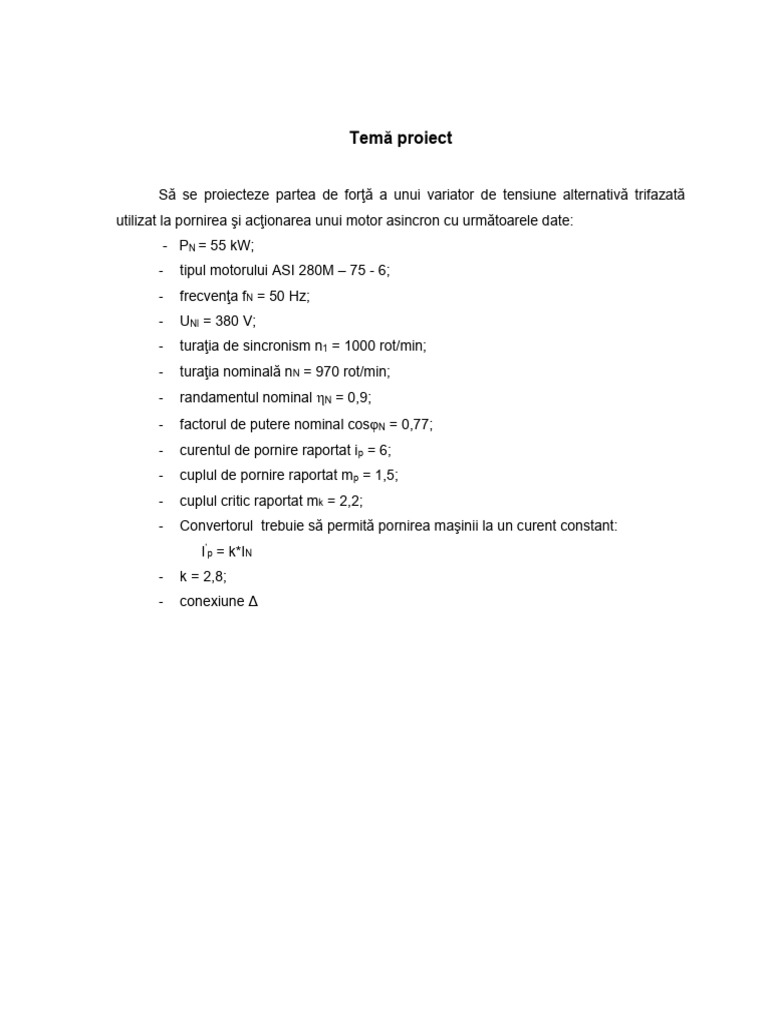 S-a ales un VTA trifazat format din două tiristoare în montaj antiparalel pe fiecare