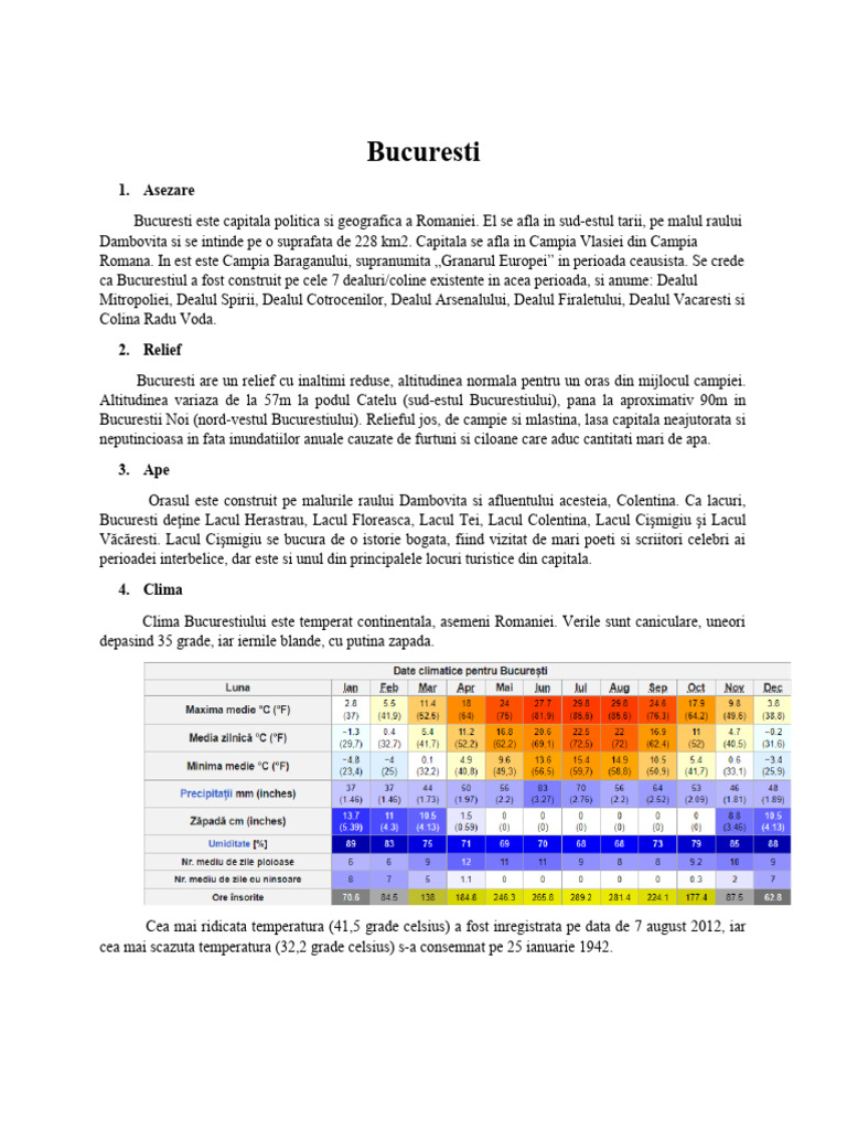 Bucuresti este capitala politica si geografica a Romaniei. El se afla in sud-estul tarii, pe malul raului