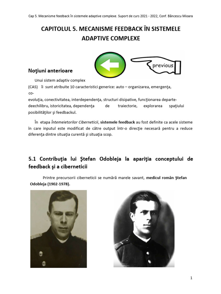 Cap 5. Mecanisme feedback ȋn sistemele adaptive complexe. Suport de curs 2021 - 2022, Conf. Băncescu Mioara