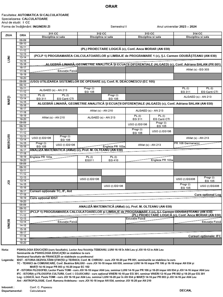 Anul de studii: I CC