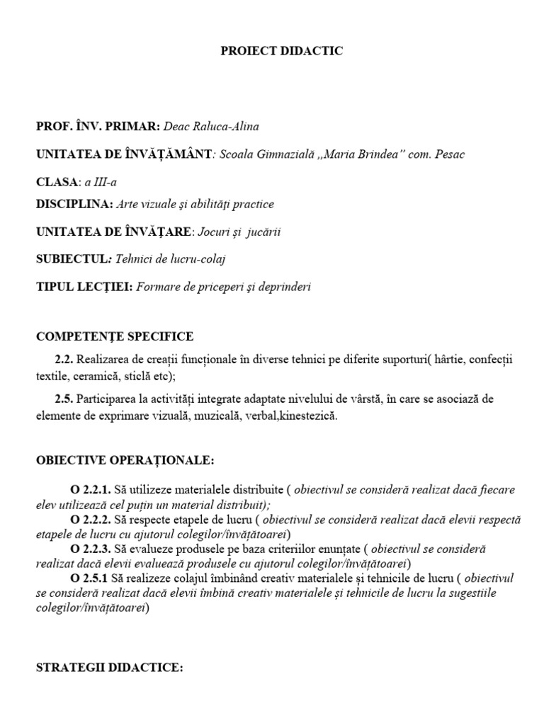 O 2.2.1. Să utilizeze materialele distribuite ( obiectivul se consideră realizat dacă fiecare