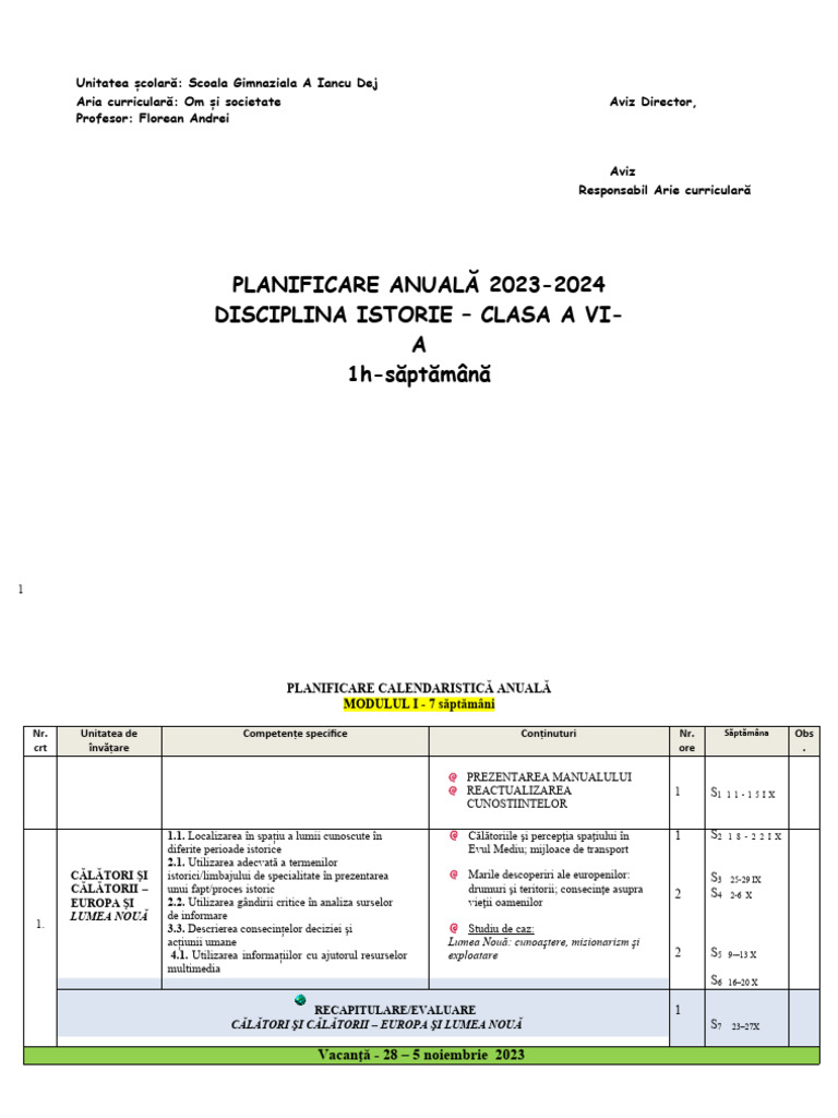PLANIFICARE CALENDARISTICĂ ANUALĂ