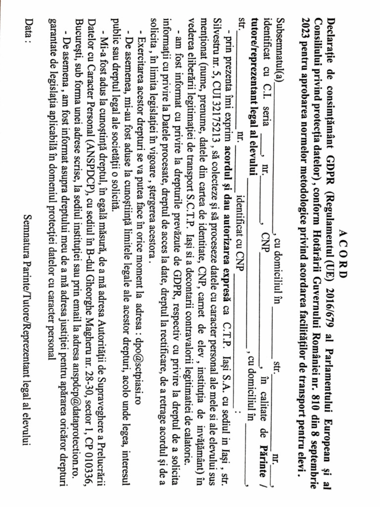 - prin prezenta imi exprim acordul ~i dau autorizarea expresa ca C.T.P. Ia~i S.A. cu sediul in I~i , str.