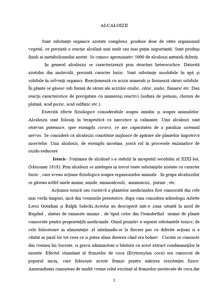 morfina, codeina, stricnina, cofeina etc. In majoritatea cazurilor, alcaloizii au fost izolaţi