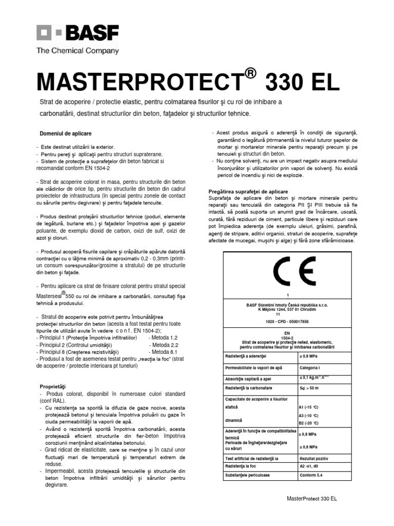 Masterseal 550 cu rol de inhibare a carbonatării, consultaţi fişa 1