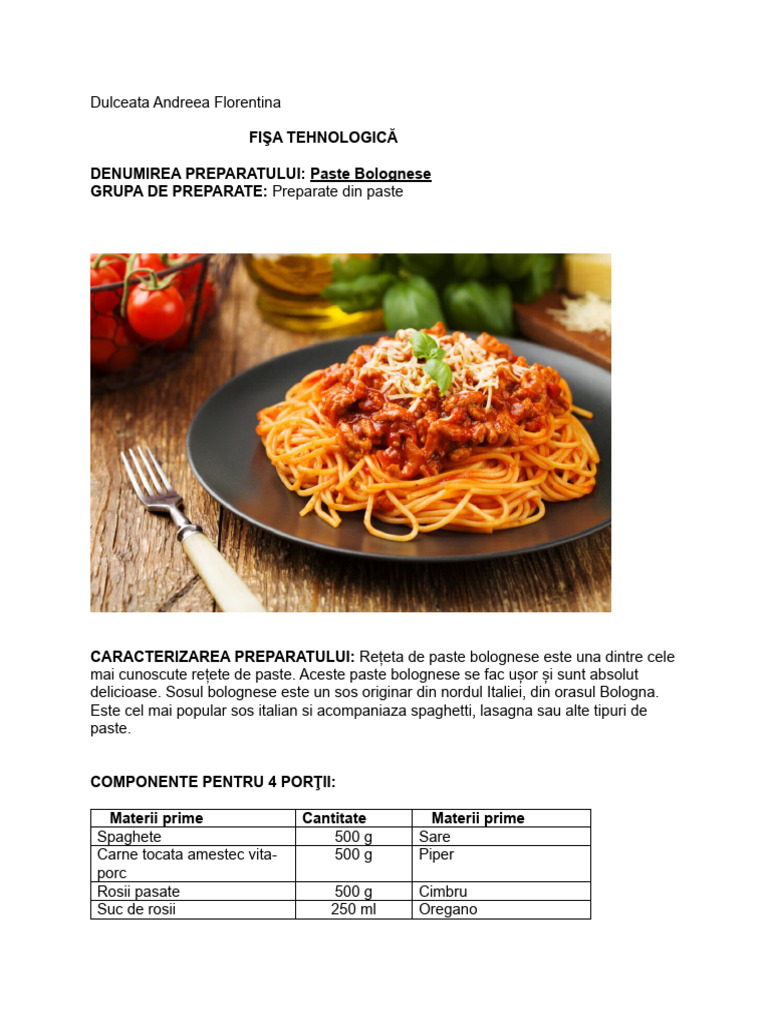 DENUMIREA PREPARATULUI: Paste Bolognese
