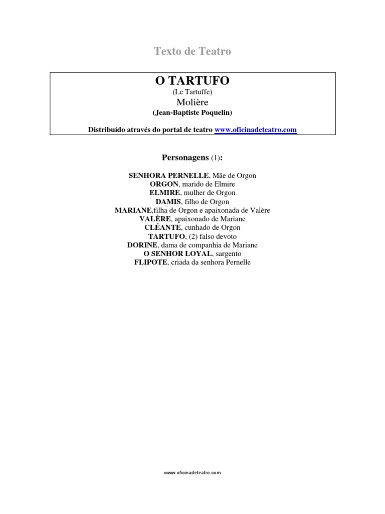 de Orgon. Preocupado em salvar sua alma, o burguês vê em Tartufo um ser puro, capaz de