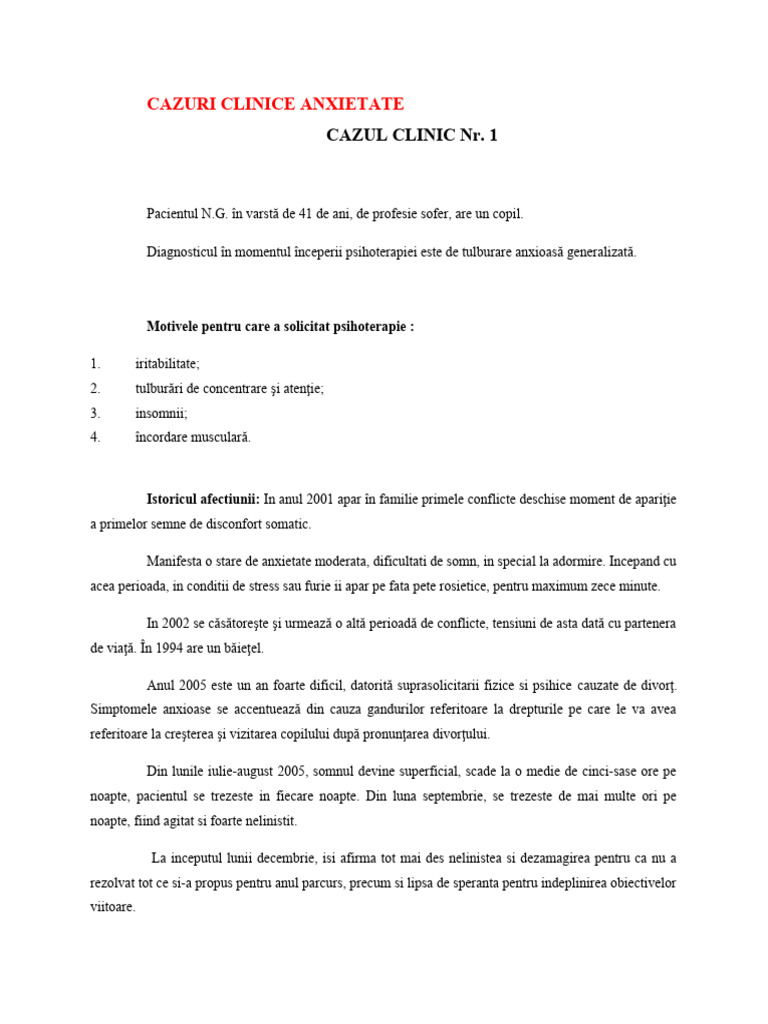 CAZURI CLINICE ANXIETATE