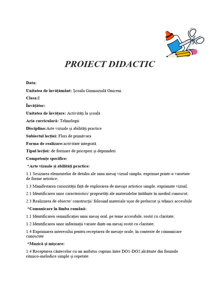 1.1 Sesizarea elementelor de detaliu ale unui mesaj vizual simplu, exprimat printr-o varietate