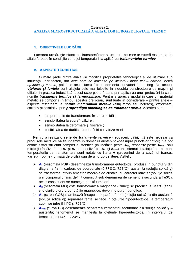 aliaje feroase în condiţiile variaţiei temperaturii la aplicărea tratamentelor termice.