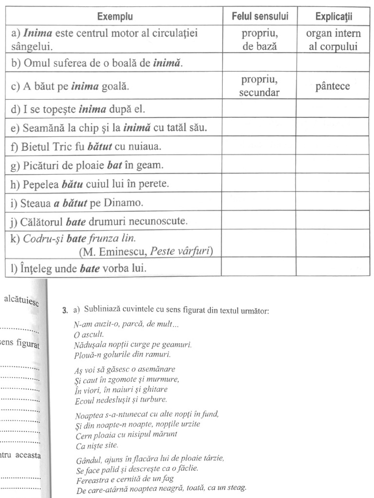 3. a) Subliniaza cuvintele cu sens figurat din textul urmator: