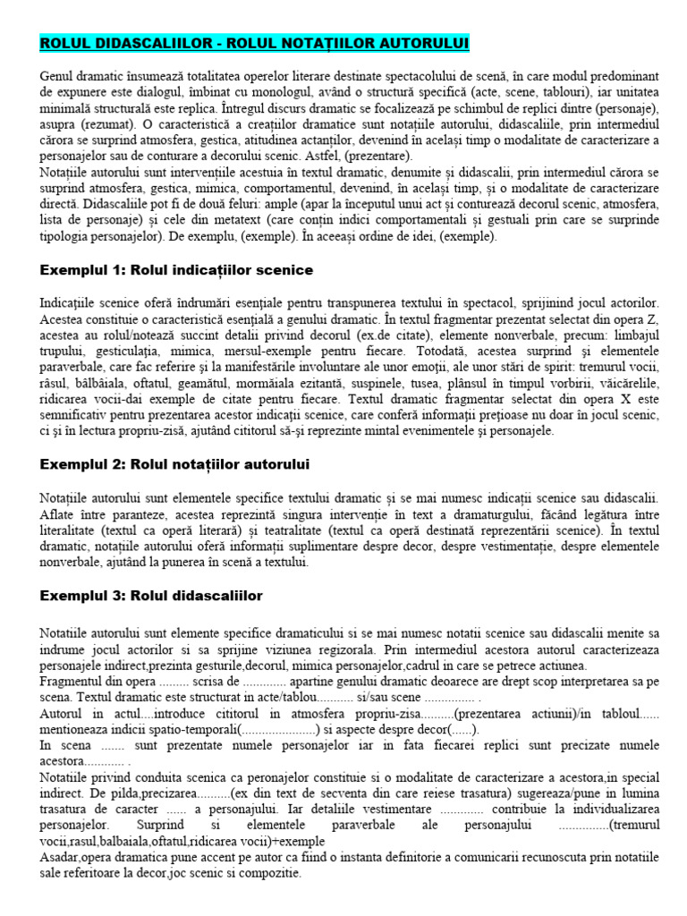 acestea au rolul/notează succint detalii privind decorul ([Link] citate), elemente nonverbale, precum: limbajul