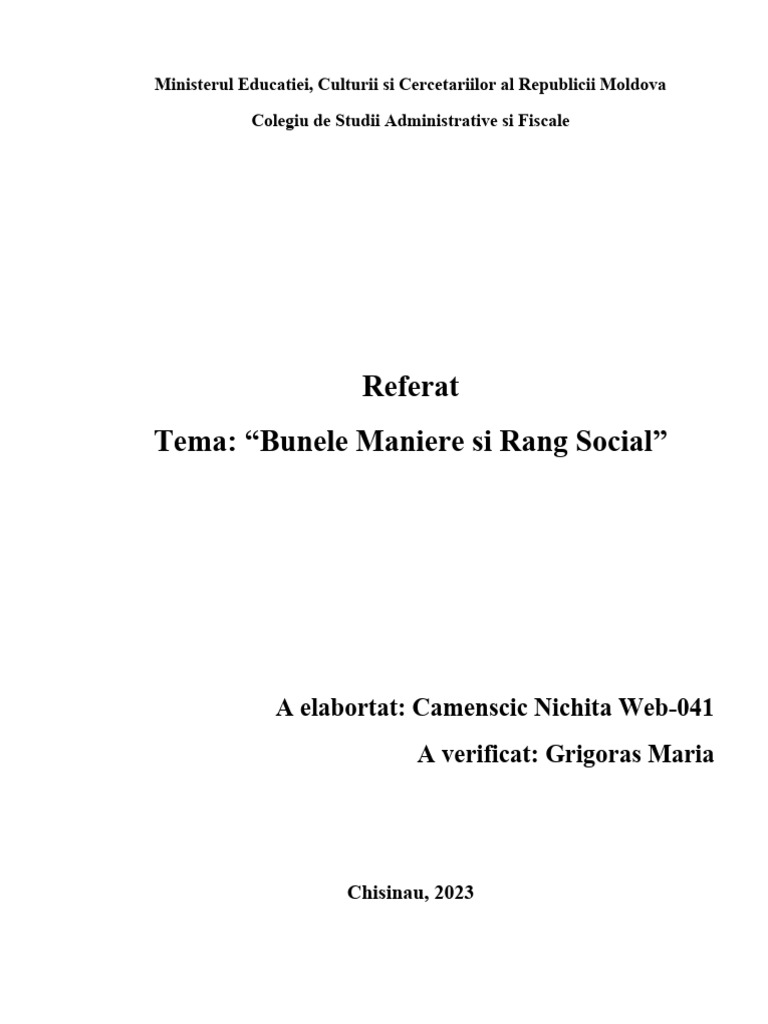 Tema: “Bunele Maniere si Rang Social”