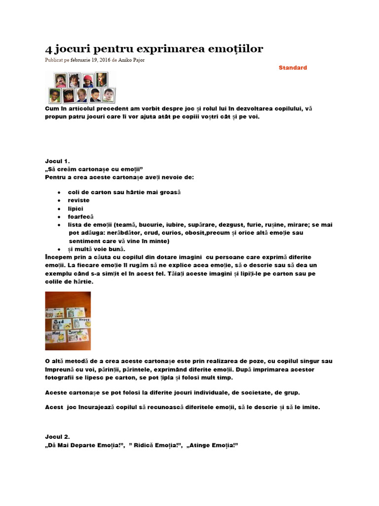 4 jocuri pentru exprimarea emoțiilor