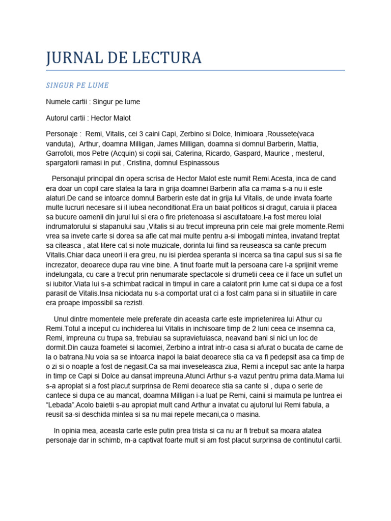 Personajul principal din opera scrisa de Hector Malot este numit [Link], inca de cand