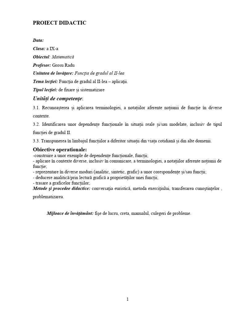 lecției de gradul II f:R exerciţiului