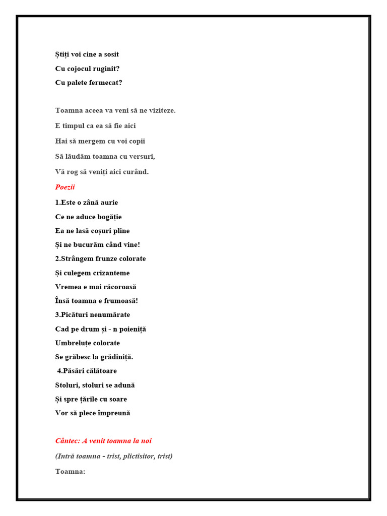 Prezentator: Ce toamnă tristă avem. Băieți, să înveselim toamna.