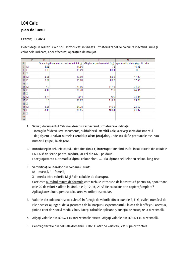 - daţi fişierului salvat numele Exercitiu Calc04 (xxx).doc, unde xxx să fie prenumele dvs. sau