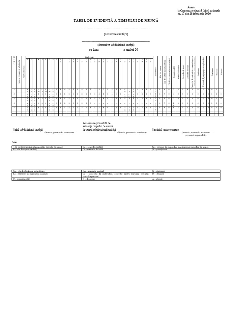 TABEL DE EVIDENȚĂ A TIMPULUI DE MUNCĂ