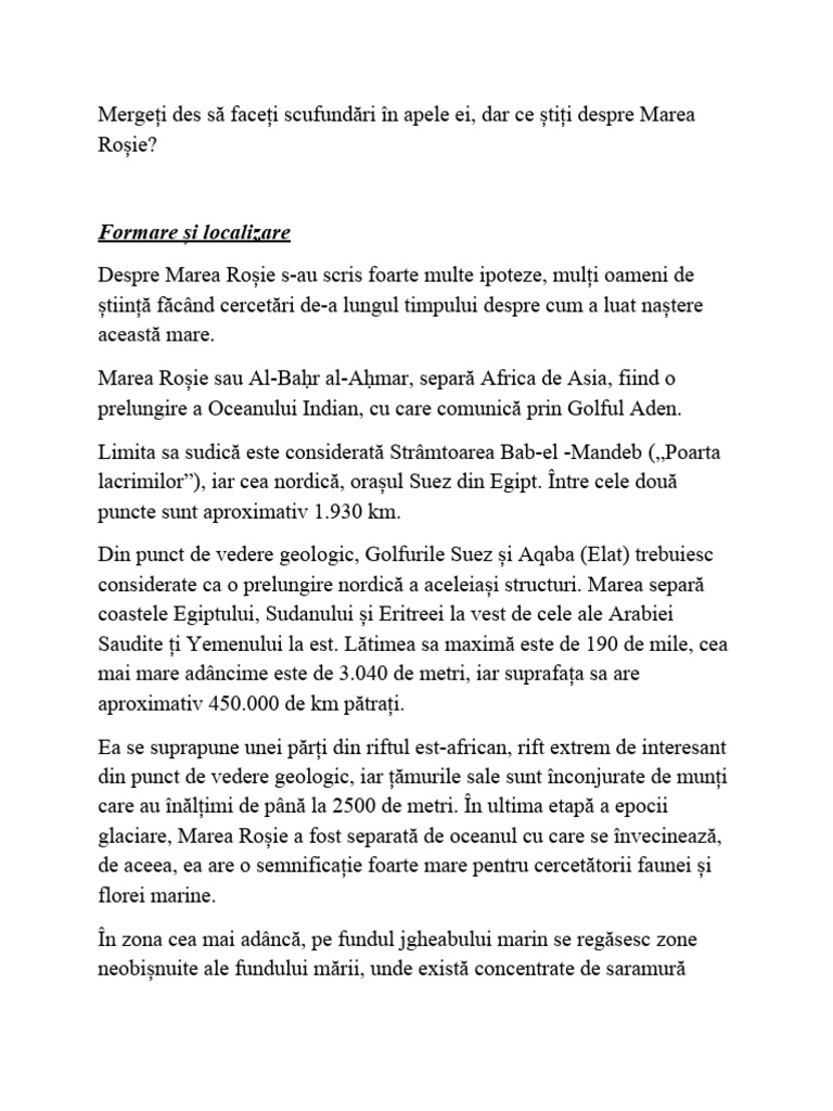 din lume este, fără îndoială, Marea Roșie. Aceasta este, după cum am