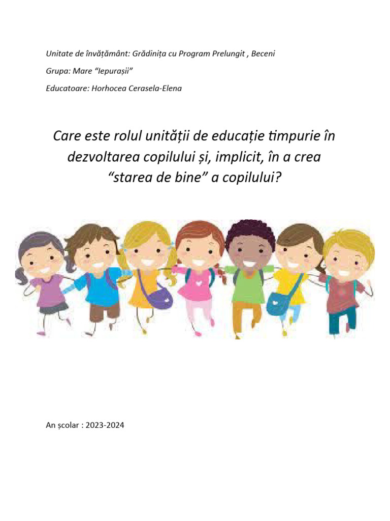 Cu referință la titlul lucrării, „Care este rolul unitatii de educatie timpurie in