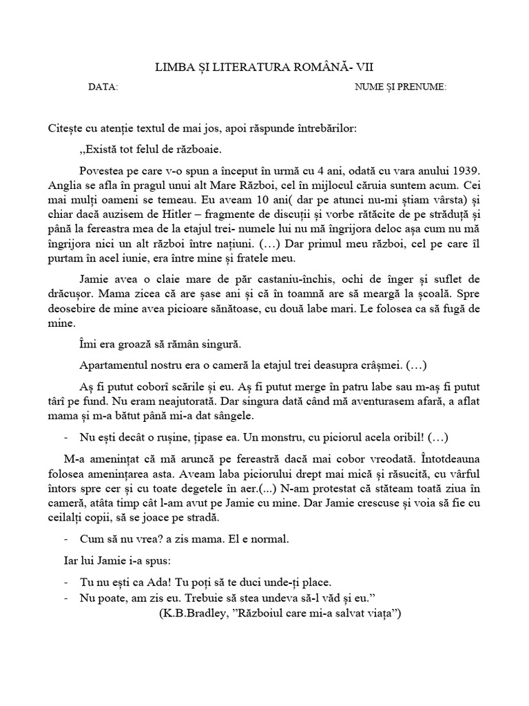 LIMBA ȘI LITERATURA ROMÂNĂ- VII