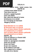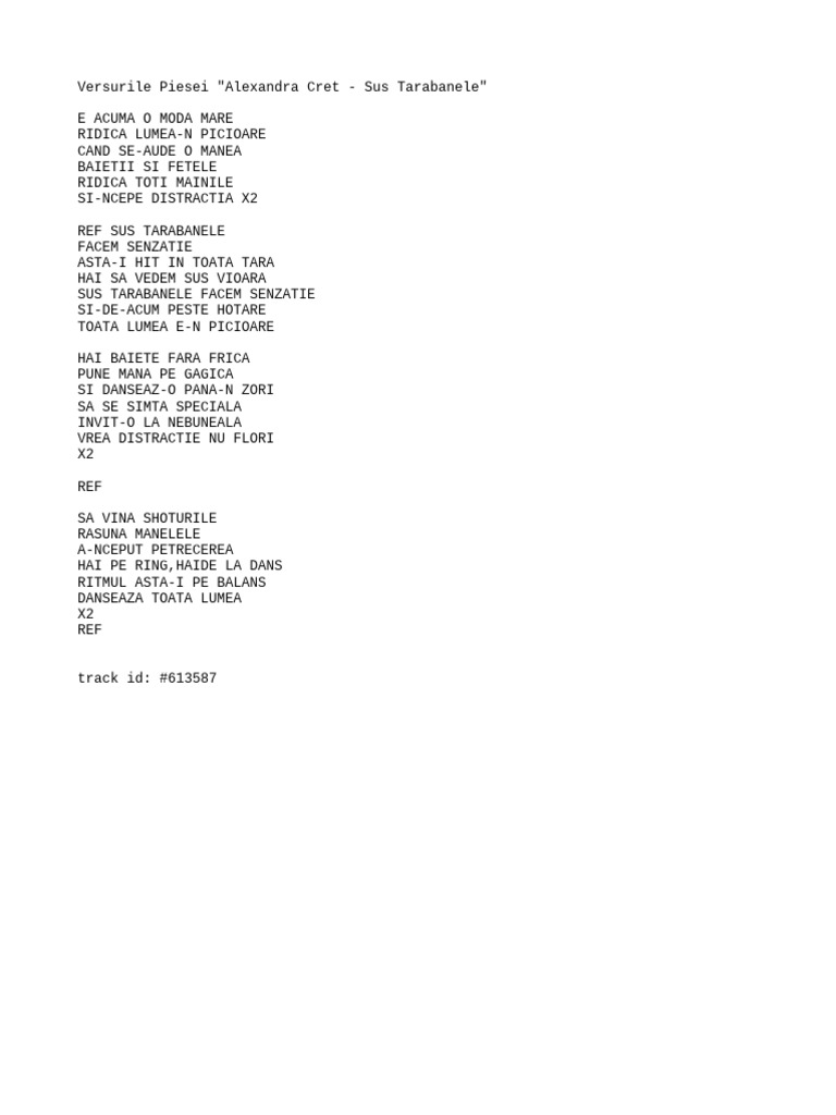 Versurile Piesei "Alexandra Cret - Sus Tarabanele"