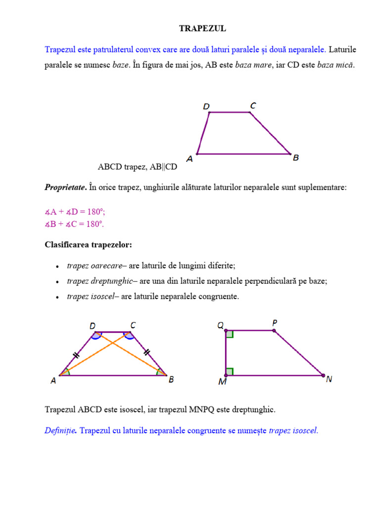 trapez oarecare– are laturile de lungimi diferite;