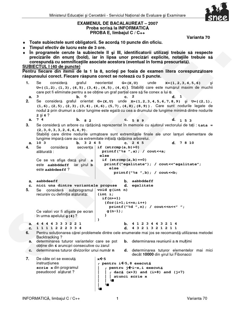 INFORMATIC✄, limbajul C / C++ 1 Varianta 70