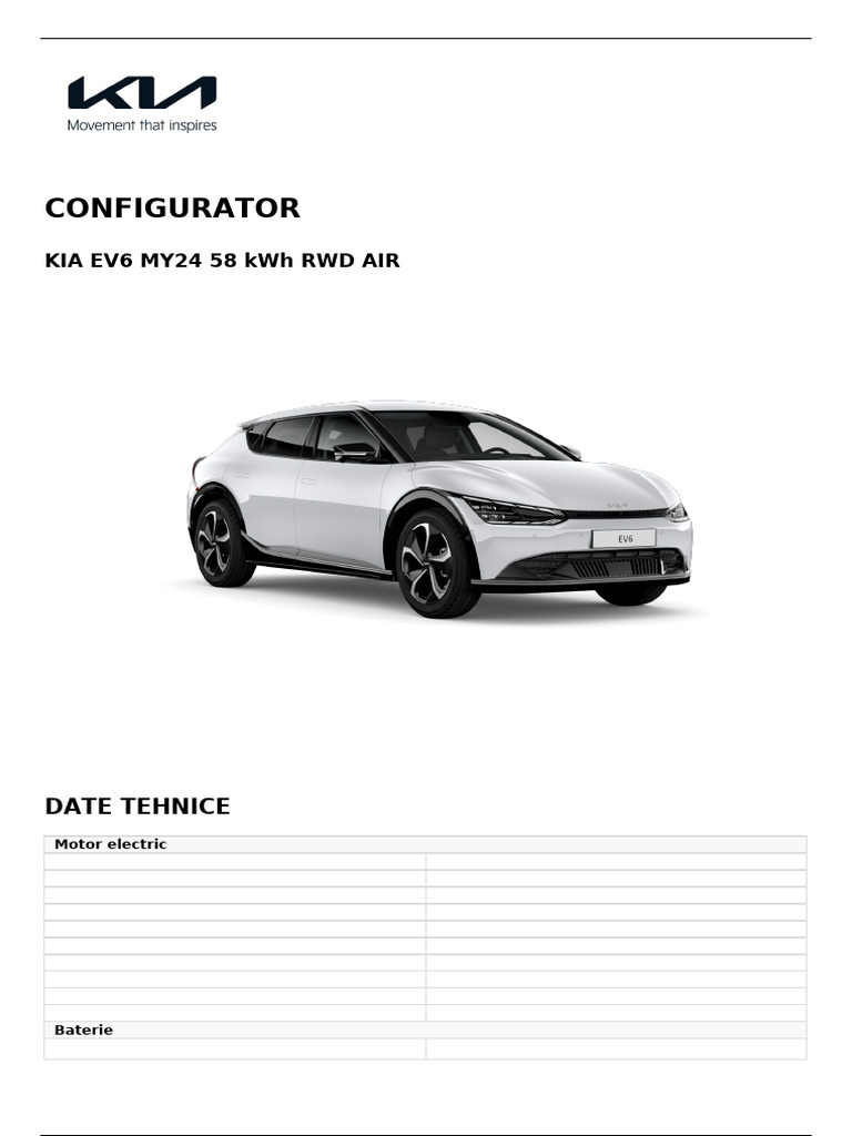 - Motorizări și versiuni de EV6 MY24 58 kWh RWD AIR 54.645 €