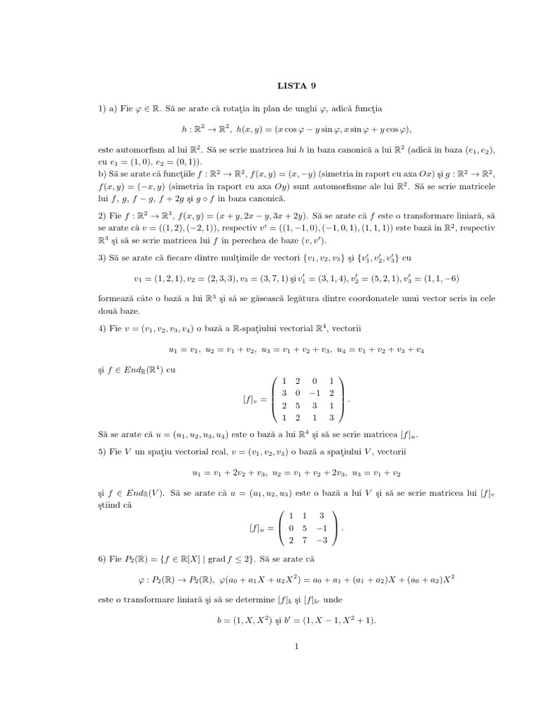 1) a) Fie ϕ ∈ R. Să se arate că rotaţia ı̂n plan de unghi ϕ, adică funcţia