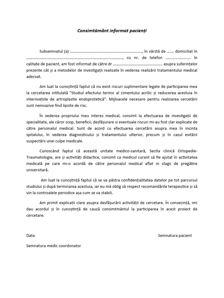 Consimtământ informat pacienți