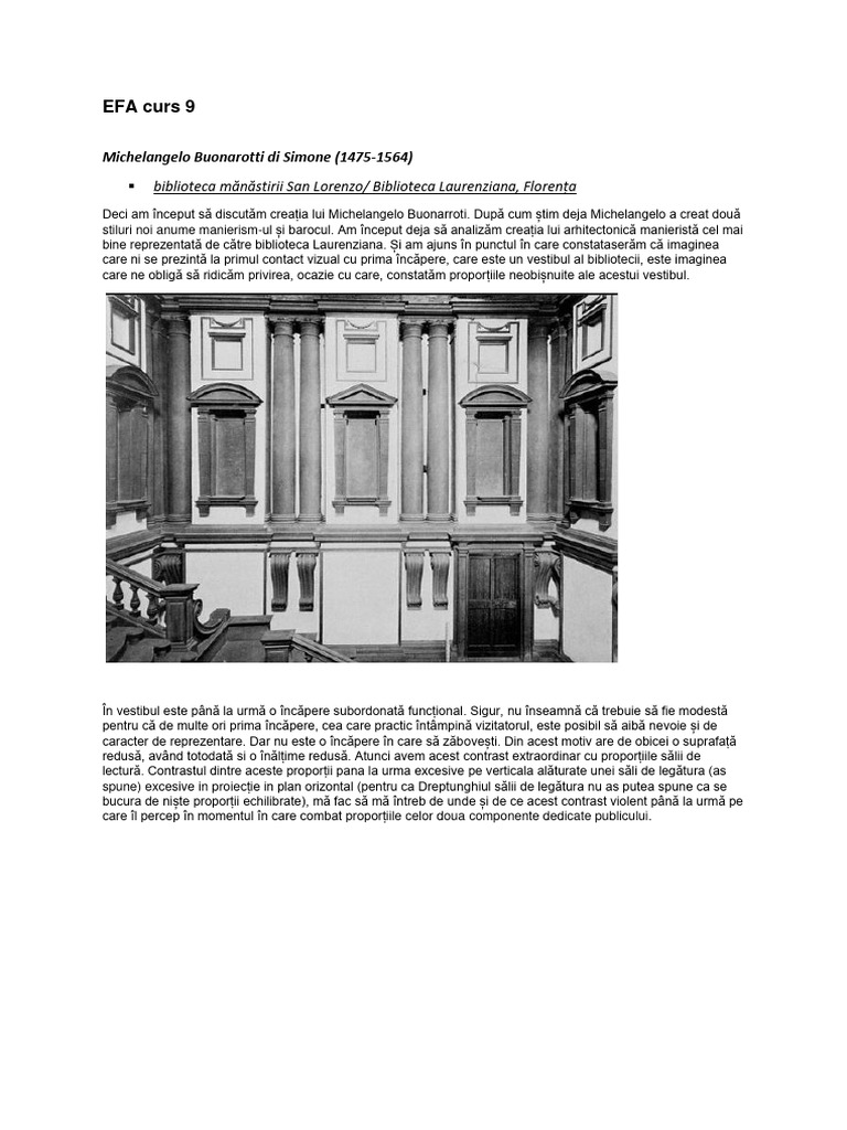 Prin urmare, în biblioteca Laurenziana sunt prezente toate aspectele esențiale ale manierismului. Este exprimată