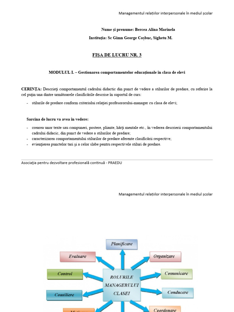 MODULUL I. – Gestionarea comportamentelor educaţionale în clasa de elevi