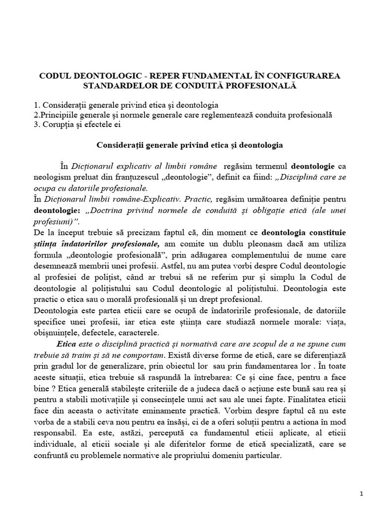 deontologie al polițistului sau Codul deontologic al polițistului. Deontologia este