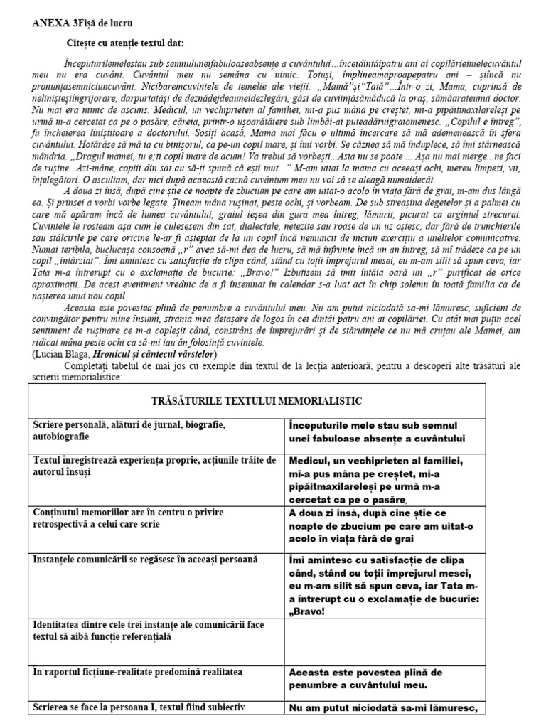 TRĂSĂTURILE TEXTULUI MEMORIALISTIC
