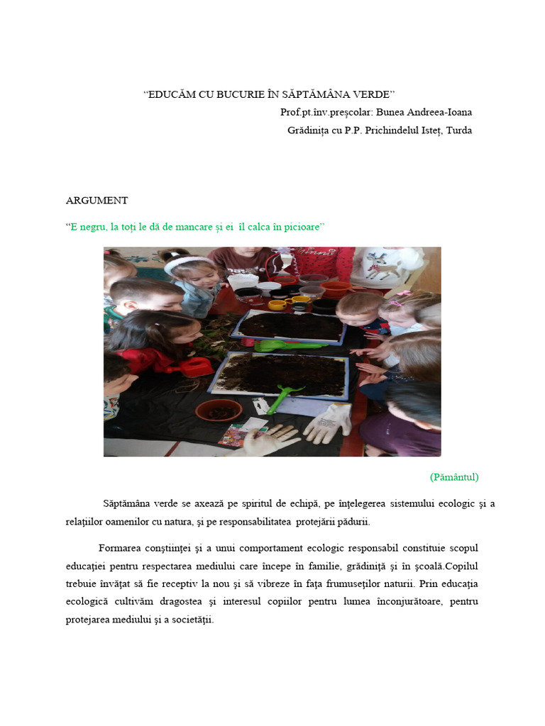 “EDUCĂM CU BUCURIE ÎN SĂPTĂMÂNA VERDE”