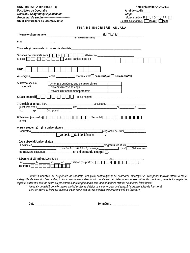 FIŞĂ DE ÎNSCRIERE ANUALĂ