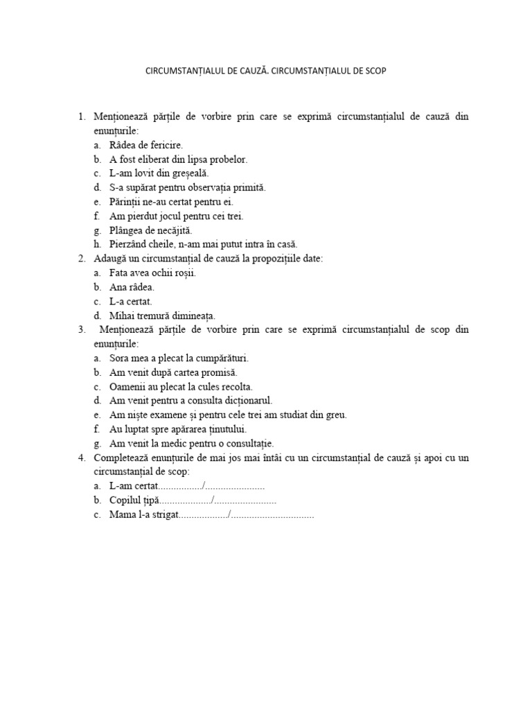 4. Completează enunțurile de mai jos mai întâi cu un circumstanțial de cauză și apoi cu un