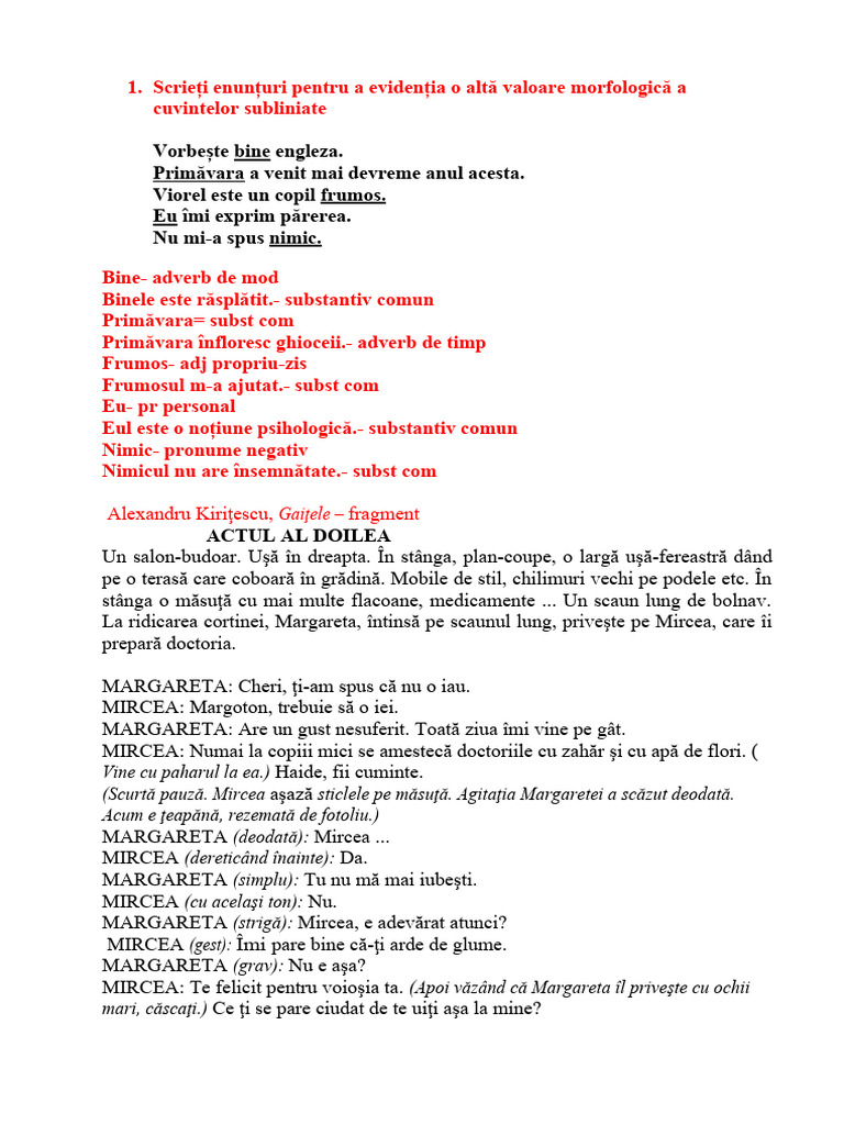 Scrieți enunțuri pentru a evidenția o altă valoare morfologică a