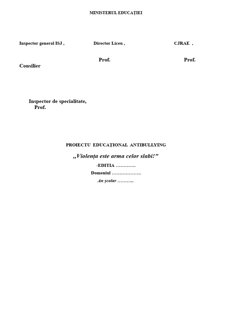 PROIECTU EDUCAŢIONAL ANTIBULLYING