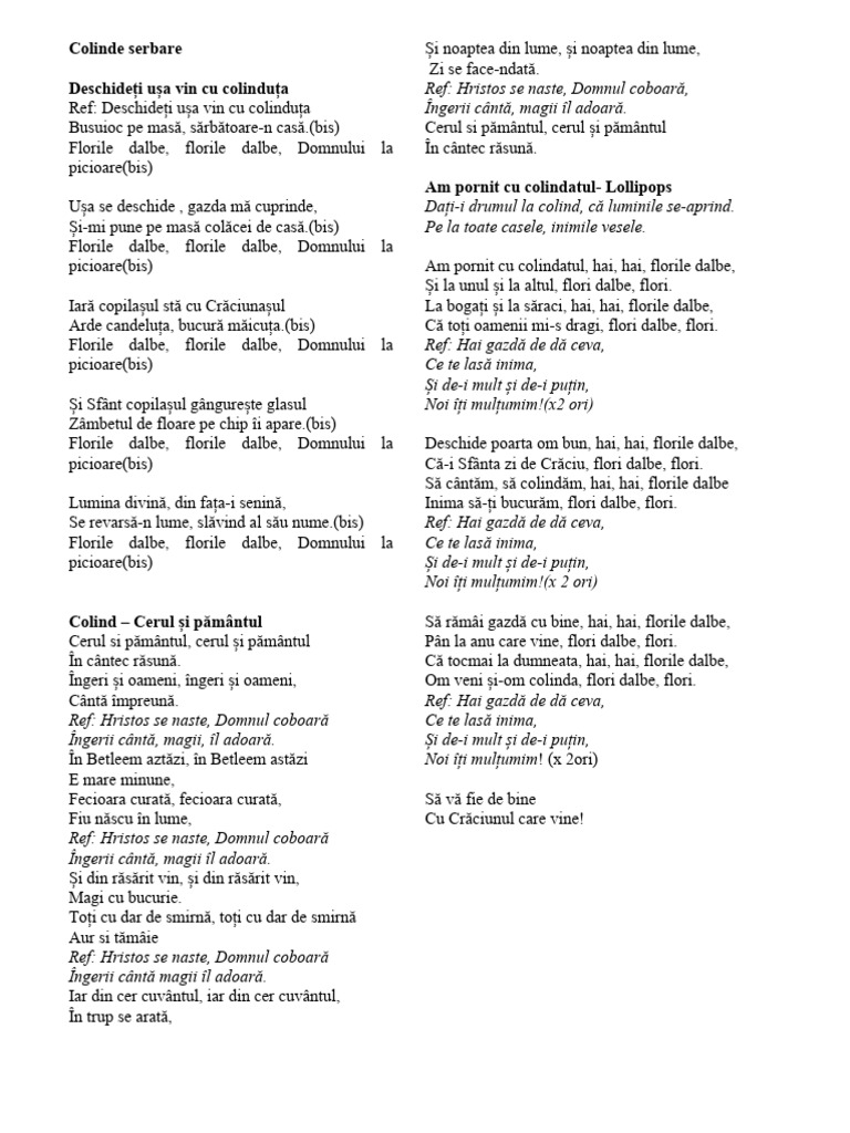 Ref: Deschideți ușa vin cu colinduța Îngerii cântă, magii îl adoară.
