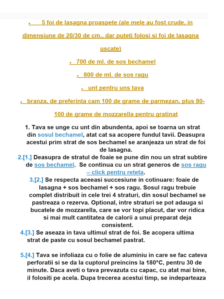 lasagna + sos bechamel + sos ragu. Sosul ragu trebuie
