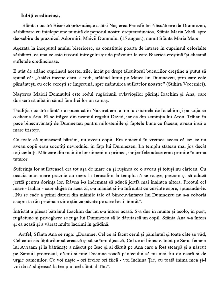 sărbătoare cu înţelepciune numită de poporul nostru dreptcredincios, Sfânta Maria Mică, spre