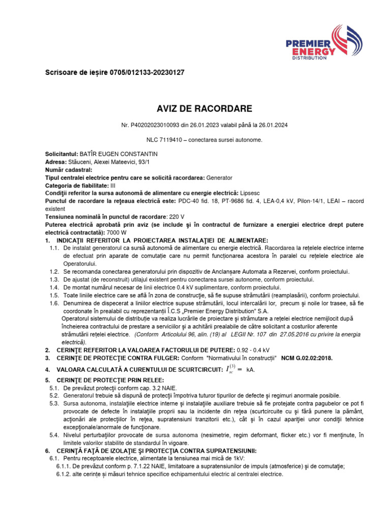 autorizat de Inspectoratul Energetic de Stat, cu operatorul de reţea este obligatorie. O copie a proiectului coordonat