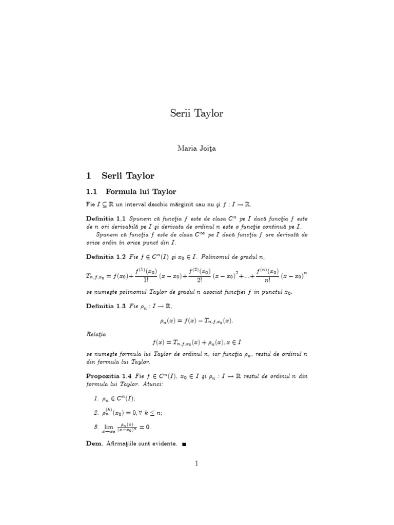 lim n (x) = 0; 8x 2 (x0 r; x0 r) I; unde n (x) este restul de ordinul n