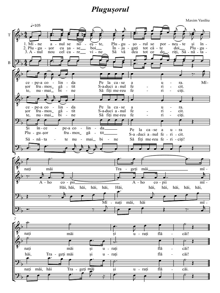 2. Plu - gu - șor cu șa - se boi În - ju - gați tot câ - te doi Plu - gu -