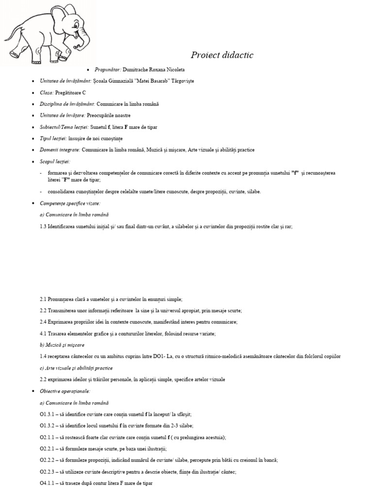 - formarea și dezvoltarea competențelor de comunicare corectă în diferite contexte cu accent pe pronunția sunetului ”f” și recunoașterea